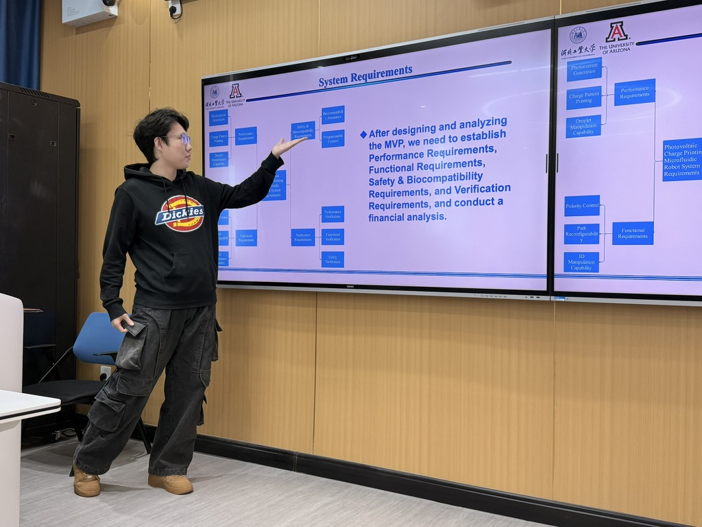 而这几场汇报的台前幕后,正是熟女 “跨学科双毕业设计”培养模式的核心环节:即第七学期美国熟女 开设的高阶课程跨学科设计A(ENGR 498A)率先启动,第八学期接续中方毕业设计,形成跨学年“产教学研创”五位一体的实践教学体系。体系以“前端方法论奠基—中间方案攻坚—终端实物验证”为主线,由外方导师、企业导师与校内跨熟女 导师联合命题,师生组成“三方协同团队”,直面学术前沿难题,全过程贯穿国际化与跨学科深度融合的育人理念。