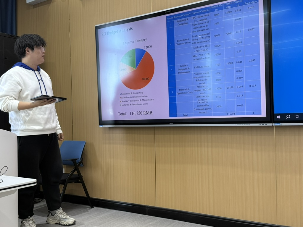 结题汇报全程英文脱稿,幻灯片页码、数据拐点、误差棒来源均被评审逐层追问,学生应答层层递进、思路澄澈如镜。评审团一致认为:选题紧贴国家“双碳”“脑计划”“氢能”战略,实验设计严谨,预算控制精确,展示风格专业自信,充分彰显材料学科研范式与团队协作精神。